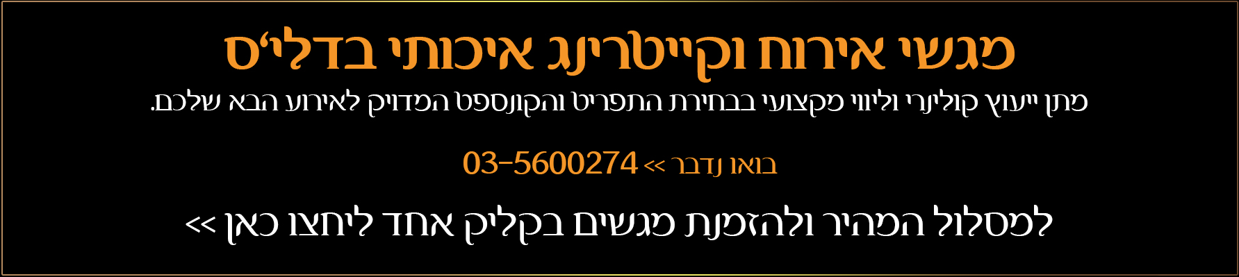 מגשי אירוח בשרי, ויש את מחלקת הקייטרינג שנותן פיתרון לכל סוגי האירועים: כנסים, ימי עיון, ישיבות