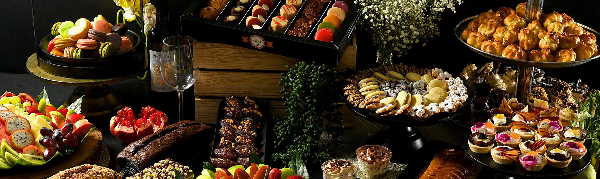 מגשי אירוח מתוקים כמובן, אי אפשר לסיים ארוחה ללא קינוח. מגשים מתוקים עשויים לכלול מגוון פינוקים: החל מקרואסונים, עוגות ופאיים עשירים ועד שוקולדים משופדים, קרמבו מקושטים ומקרונים צבעוניים. לסיום ארוחה בשרית, אפשר כמובן להזמין גם קינוחי פרווה עם כשרות בד"ץ מהדרין.